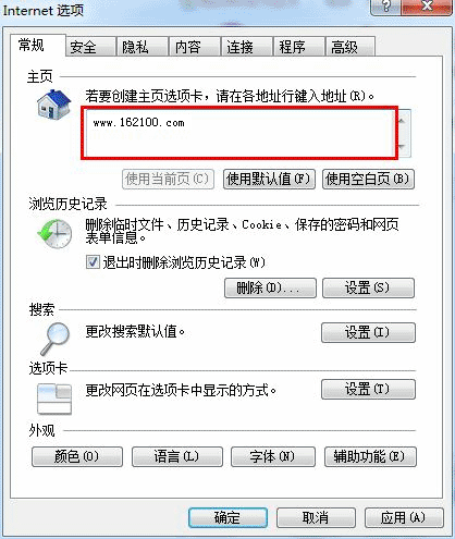 2)然后在打开的对话窗口中的主页栏的地址输入框中输入“http://sm.58q8.com/”,然后点击窗口上方的“应用”按扭即可,如下图所示: