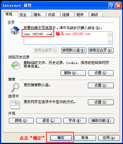 2)然后在打开的对话窗口中的主页栏的主页地址输入框中输入“http://sm.58q8.com/”,然后点击“确定”按扭即可,如图所示: