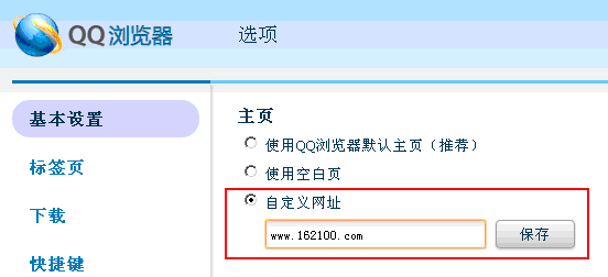 2)然后在打开的对话窗口中选择“自定义网址”并输入“http://sm.58q8.com/”,然后点击“保存”按扭即可,如图所示: